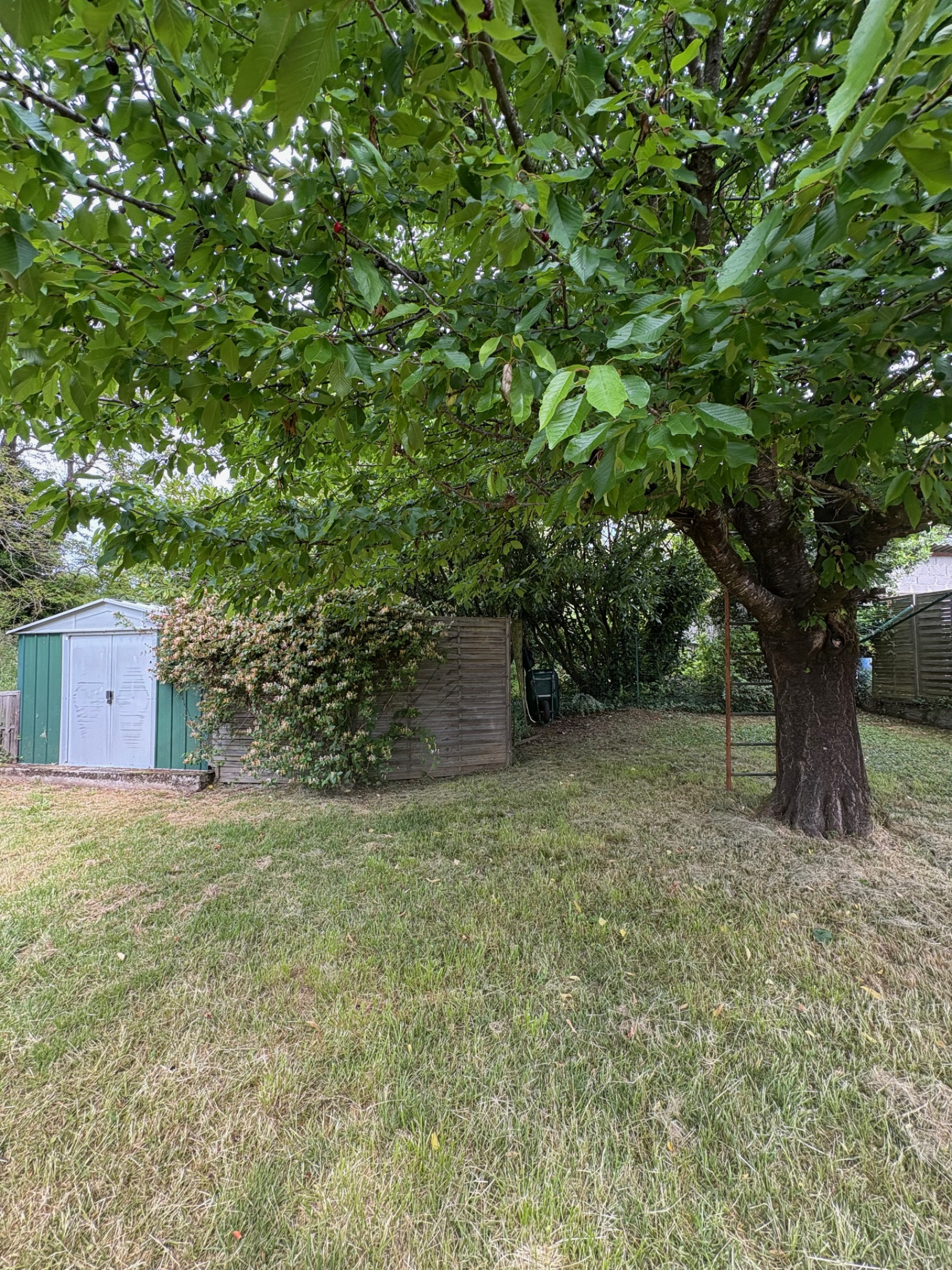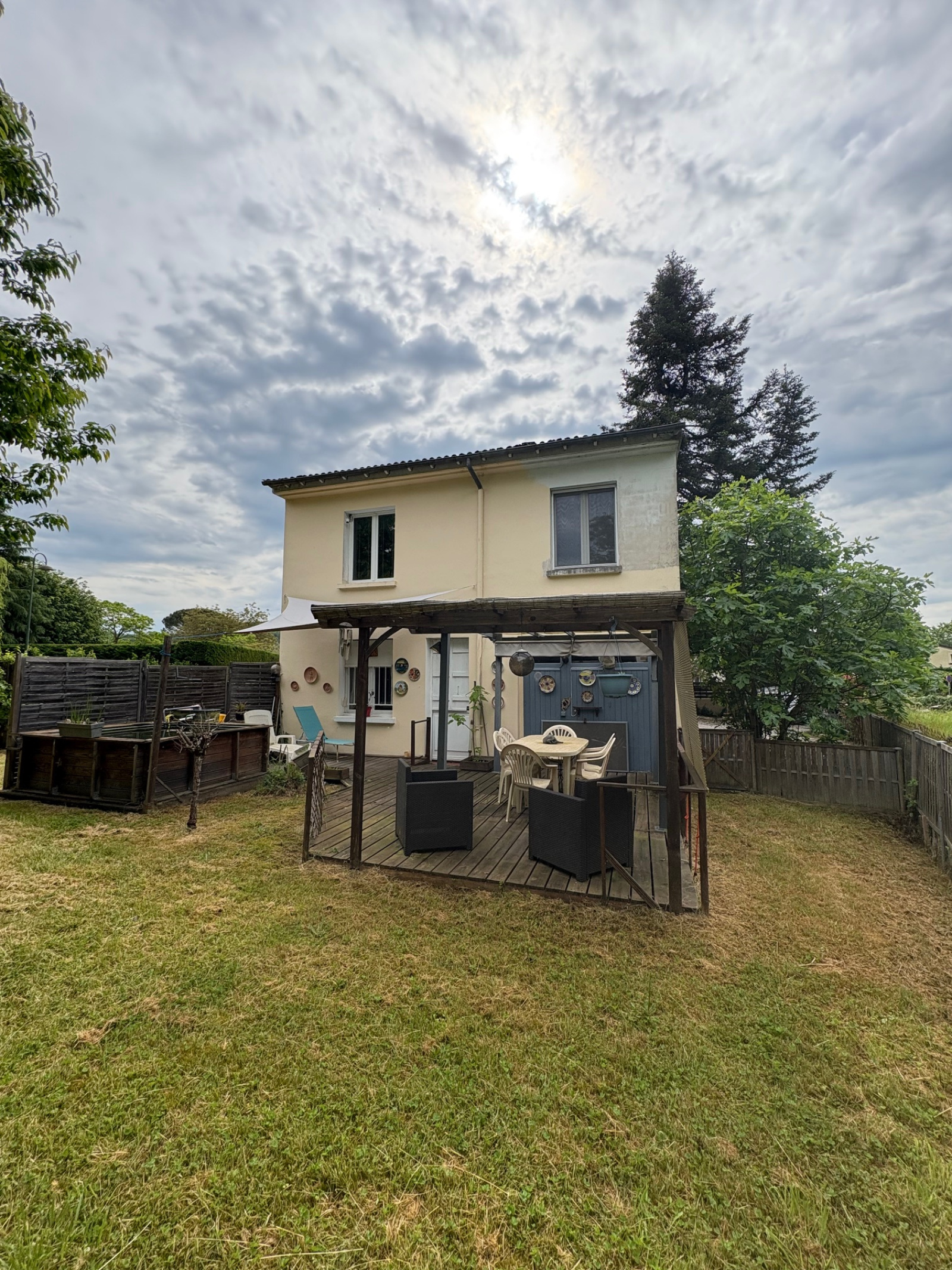 terrain de 647 m² cloturé et arboré, avec une belle terrasse.